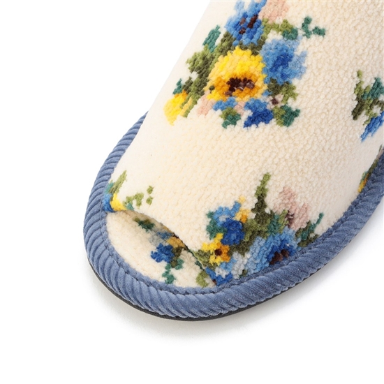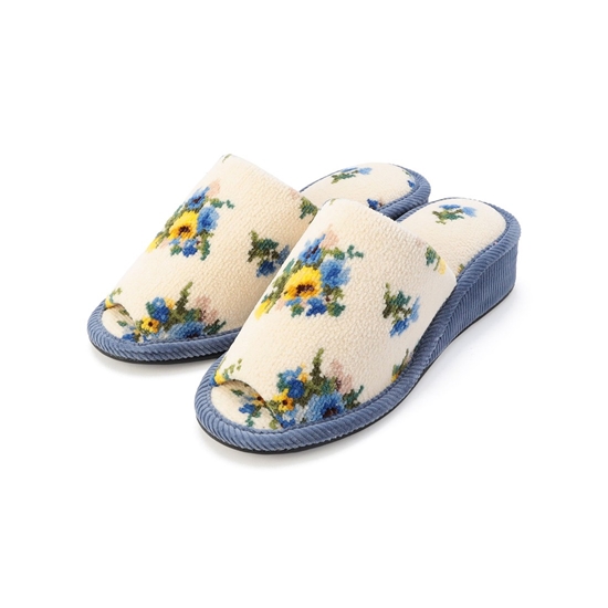 存在感のある表情が足元を引き立てる『ブラウローゼン』のヒールスリッパです。前開き仕様で通気性が良く、かかと部分に程よい高さもあるので疲れにくいのがポイント。底面は合成皮革なのでお手入れも簡単。上品な雰囲気のスリッパは年代問わずギフトにもおすすめです。