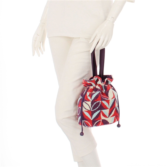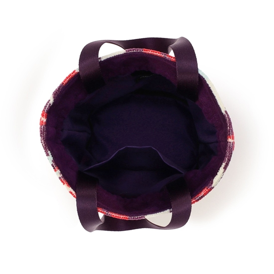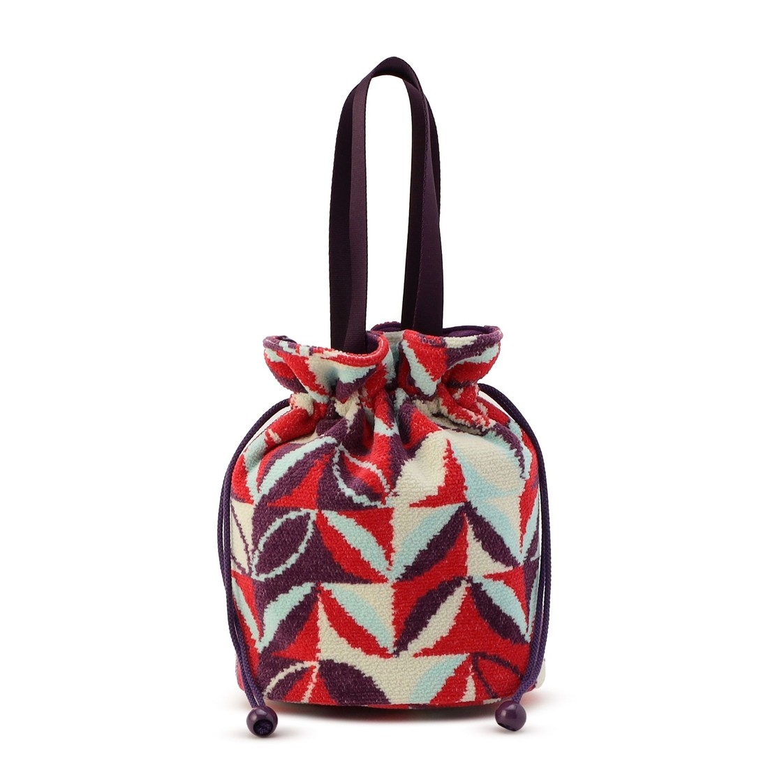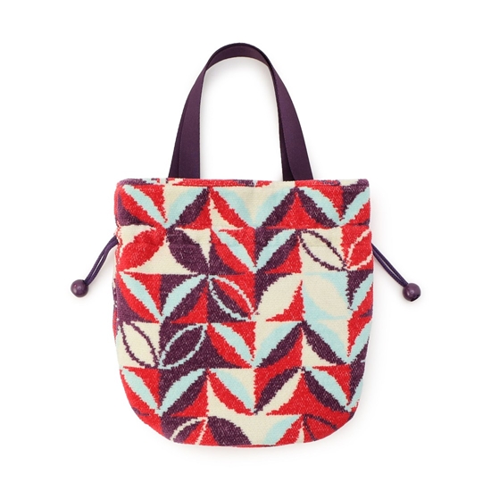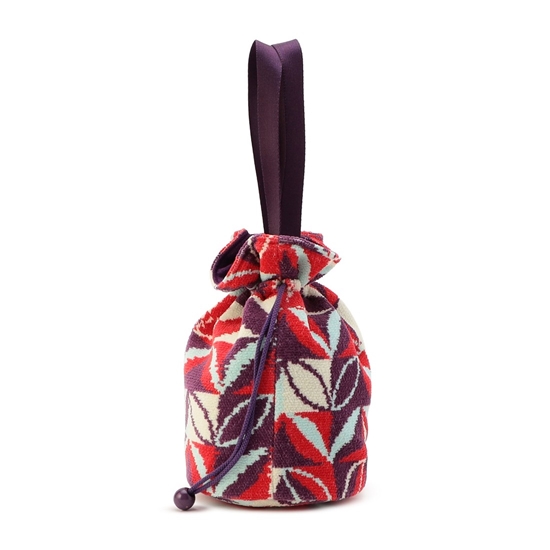 CLOUDYデザイナーが描いたパターンによる『クラウディネイチャーブルーム』の巾着バッグです。開口部を絞ると、ふっくらとボリュームのあるフォルムになり、カジュアルにもきれいめにも持ちやすい雰囲気になります。内側にはオープンポケットがあり、必要な小物だけを仕分けることも。底面が楕円形でマチも広く、見た目以上に収納力のあるアイテムです。
