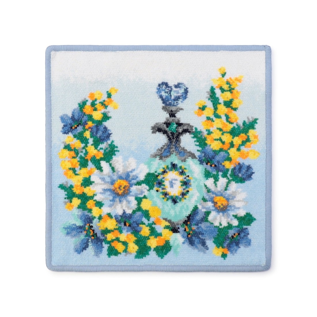 3月の誕生石アクアマリンから着想を得た『マイジュエルマーチ』のハンカチです。周囲には誕生花のミモザやマーガレット、ブルースターをそえて透明感のある柄に。いまにもほんのりと甘い香りが漂ってきそうな魅力溢れる1枚です。ご自身へのご褒美や、誕生月の方へのギフトにもいかがでしょうか。