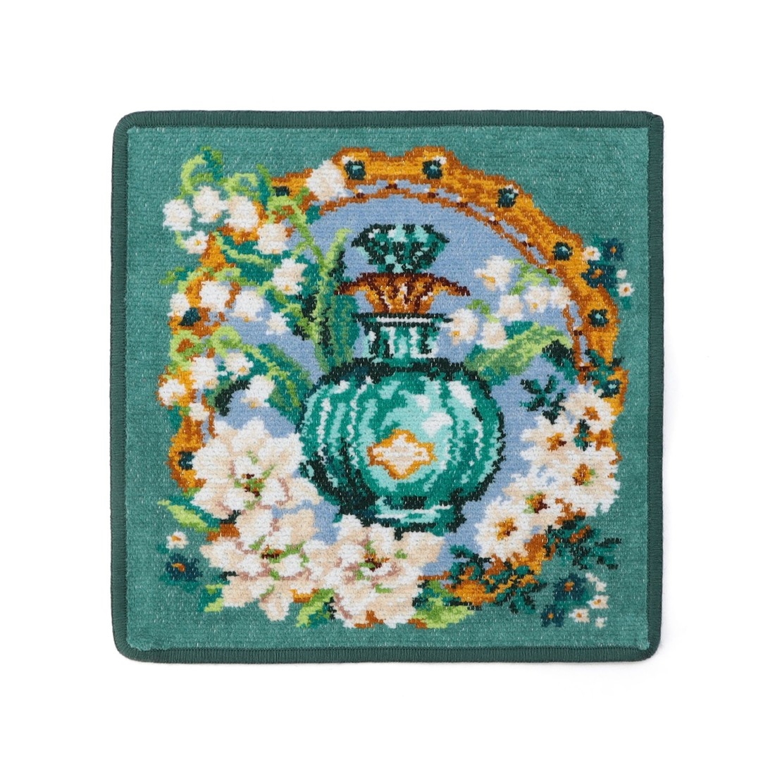 5月の誕生石エメラルドから着想を得た『マイジュエルメイ』のハンカチです。周囲には誕生花のマトリカリアに、アマリリスやスズランをそえて上品な輝きに満ちた柄に。いまにも清涼感のある香りが漂ってきそうな魅力溢れる1枚です。ご自身へのご褒美や、誕生月の方へのギフトにもいかがでしょうか。