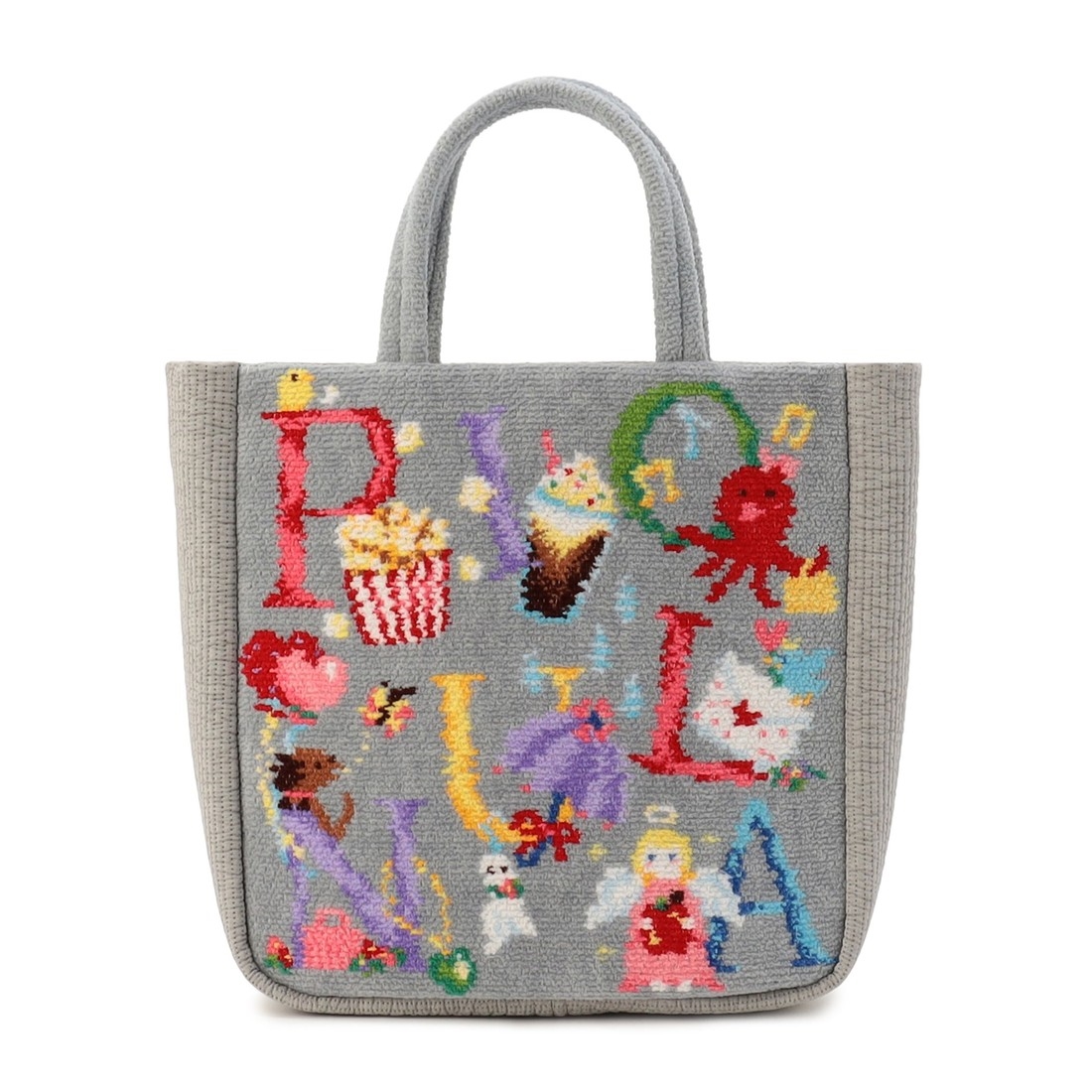 アルファベットのモチーフは、「P」はPopcorn(ポップコーン)、「I」はIced Latte(アイスラテ)、「O」はOctopus(オクトパス)、「N」はNecklace(ネックレス)、「U」はUmbrella(アンブレラ) 、「A」はAngel(エンジェル)、「L」はLove Letter(ラブレター)です。