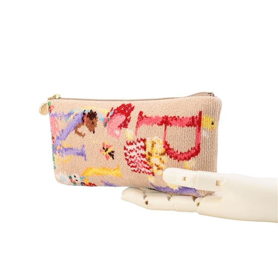 自由で遊び心たっぷりな『ピオフル』のポーチです。フェイラーの人気柄「ジョイフル」をもとに、ピオヌンナルのアルファベットを1文字ずつ取り入れたオリジナルデザイン。コラボレーションならではのスペシャルな表情に仕上げました。ペンシル型コスメやメイク道具の収納、トラベル用のアメニティグッズの持ち運びにと、幅広い用途で活躍します。