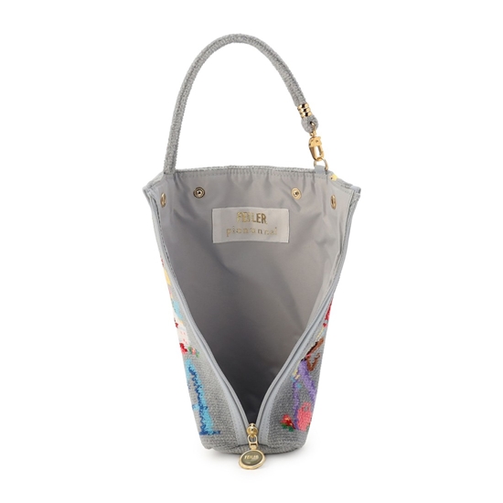 自由で遊び心たっぷりな『ピオフル』のボトルポーチです。フェイラーの人気柄「ジョイフル」をもとに、ピオヌンナルのアルファベットを1文字ずつ取り入れたオリジナルデザイン。コラボレーションならではのスペシャルな表情に仕上げました。ボトルが収まりやすいファスナー仕様は出し入れが簡単。ハンドルの片側がナス管仕様で取り外せて、バッグやベビーカーに付けて持ち運ぶこともできる便利なアイテムです。
