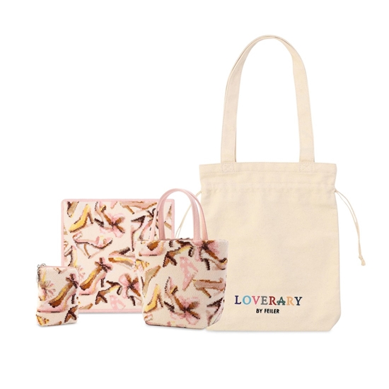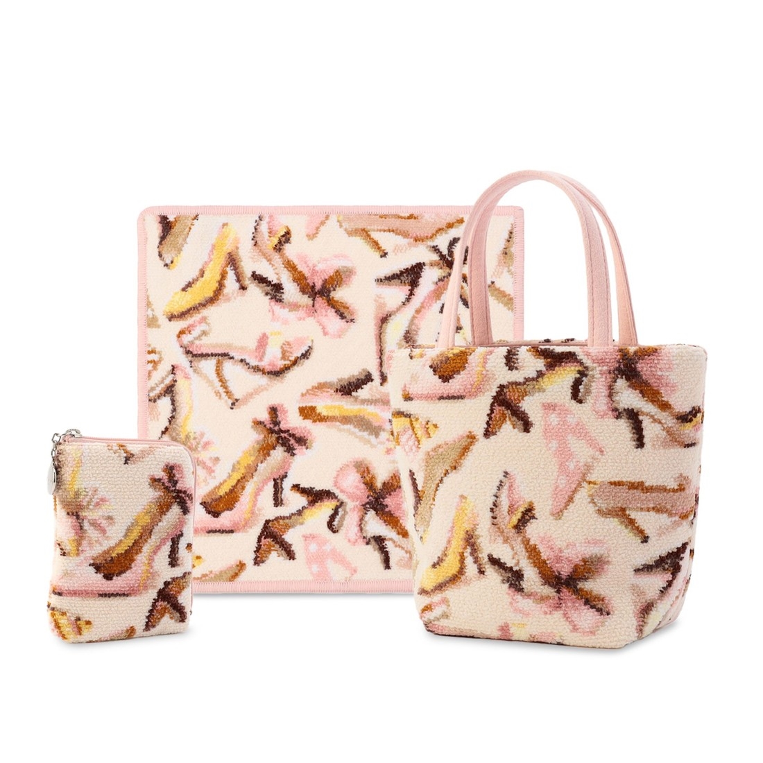 『ラブマイシューズ』の2026年福袋です。ハンカチ、ポーチ、バッグをセットにしました。LOVEARY BY FEILERのロゴ入り専用外袋付きです。1足1足に思い出が詰まった、お気に入りのシューズたちを描き、華やかな表情に。淡いピンクの色彩がやさしい魅力を高めます。小物類もおしゃれに、そんな思いを叶えてくれるアイテムです。