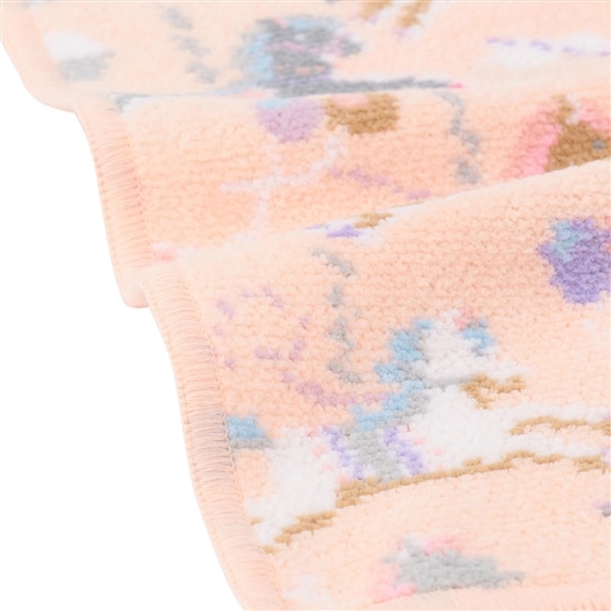 淡いパステルトーンがロマンティック&フェミニンな雰囲気を演出。ふんわりとソフトな肌触りのシュニール織のハンカチは、吸水性に優れているのも特徴で、ギフトにも最適です。
