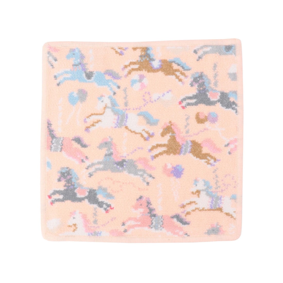 移動遊園地のメリーゴーラウンドをイメージした『ラブラリーモクバ』柄のハンカチ。