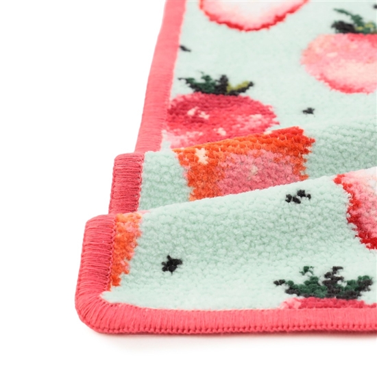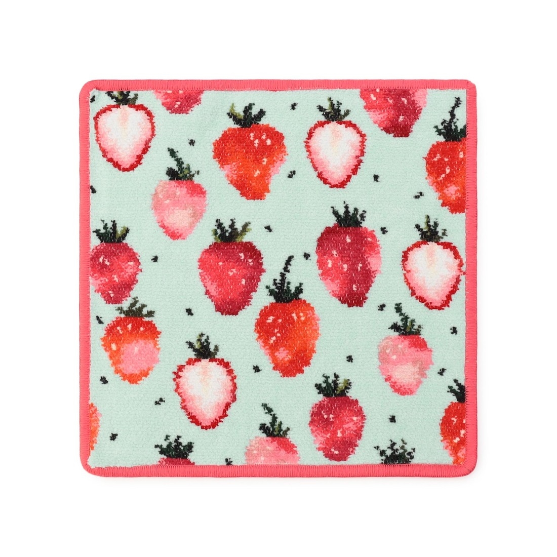甘酸っぱいストロベリーをあしらった『ストロベリードット』のハンカチです。小さなドットを組み合わせ、かわいらしく仕上げました。ペールグリーンとストロベリーの鮮やかなカラーリングも魅力的。シュニール織のハンカチは手元をつつみこむような、ふんわりとした肌ざわり。幸せな気分を届けてくれる、贈り物にぴったりの一品です。