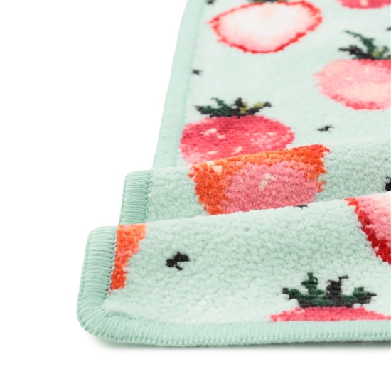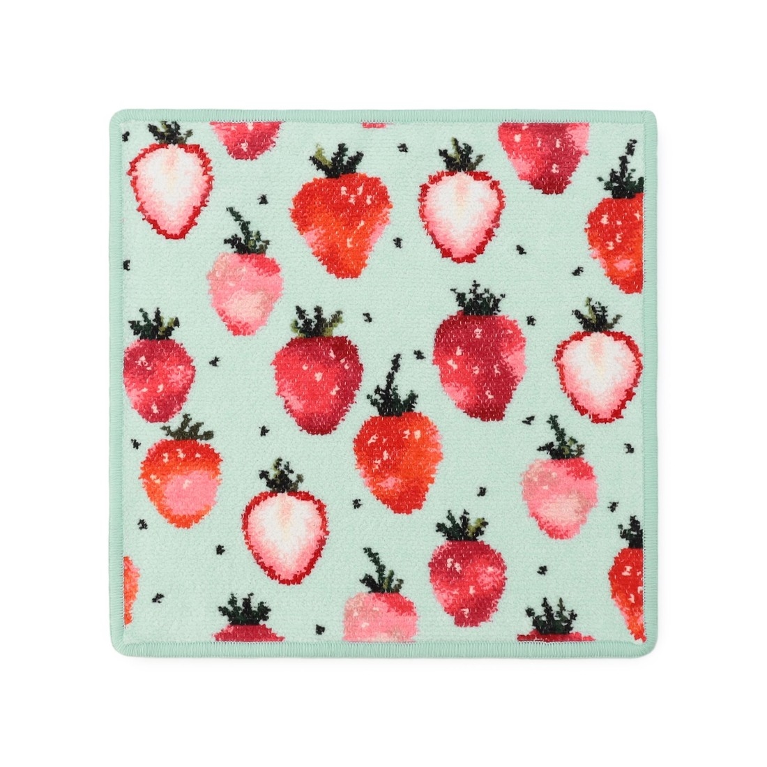 甘酸っぱいストロベリーをあしらった『ストロベリードット』のハンカチです。小さなドットを組み合わせ、かわいらしく仕上げました。ペールグリーンとストロベリーの鮮やかなカラーリングも魅力的。シュニール織のハンカチは手元をつつみこむような、ふんわりとした肌ざわり。幸せな気分を届けてくれる、贈り物にぴったりの一品です。