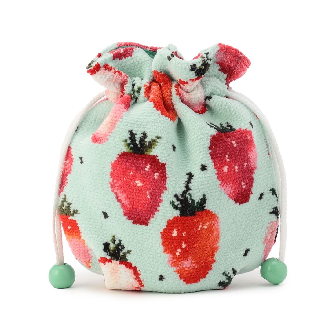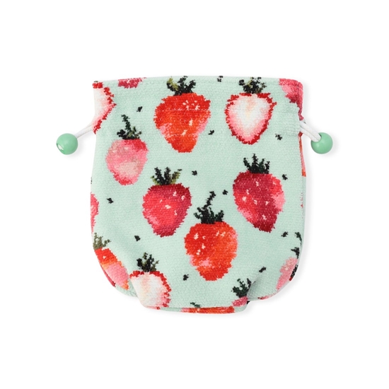 甘酸っぱい香りが漂ってくような『ストロベリードット』の巾着です。ペールグリーンにフレッシュなストロベリーが映える、やさしいコントラストも魅力のひとつ。間口をきゅっと絞れば、ふっくらとした丸みのあるかわいらしいフォルムに。コスメやお菓子、モバイルグッズなど、さまざまな小物を入れるのに役立つ一品です。