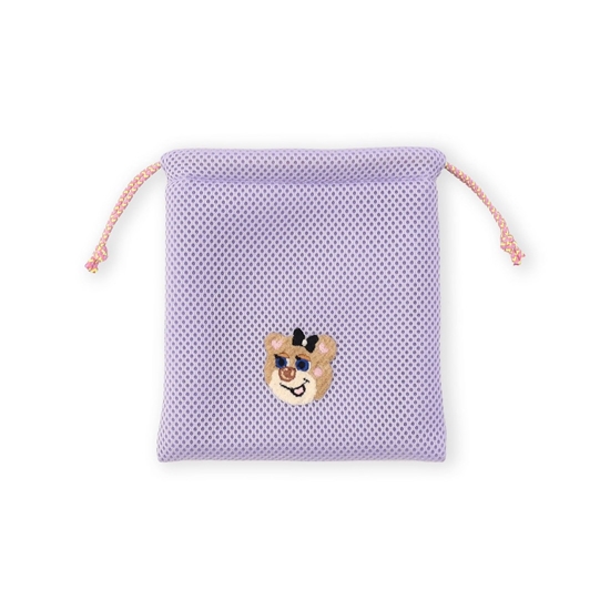ふっくらとしたフォルムがかわいらしい『オールドテディガール』の巾着です。軽やかなメッシュ素材、ミックスカラーのコードなどを採用しカジュアルな仕上がりに。リボンでおめかしをしたオールドテディガールの刺しゅうが、思わず目に留まります。手洗い可能なのも嬉しいポイント。コスメやモバイルグッズ、トラベル用のグッズなど、さまざまな小物を入れるのに重宝します。