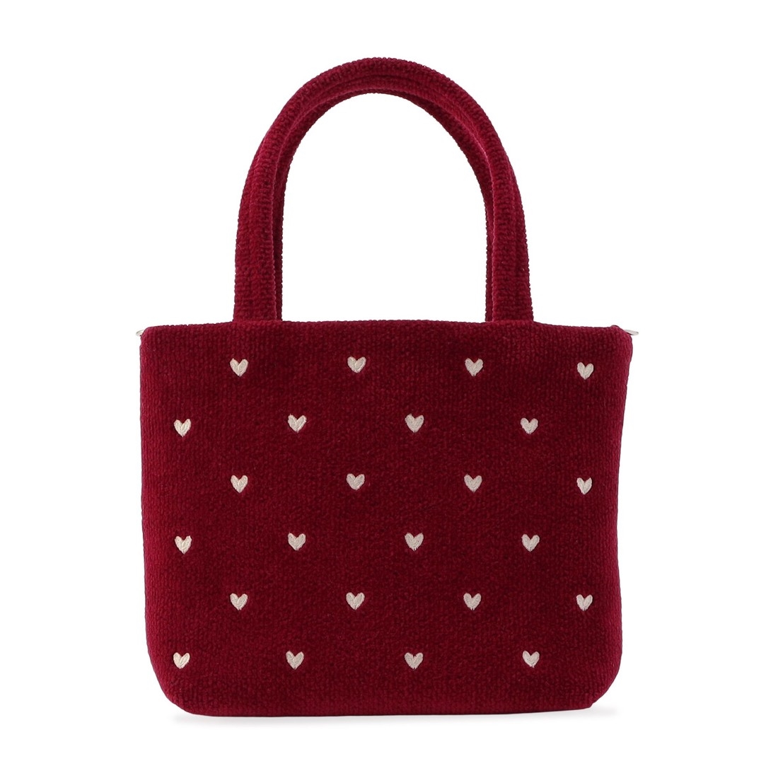 上品で洗練されたかわいらしさがある『ラブラリーハート』のバッグです。前面には小さなハートの刺しゅうをあしらい、背面はシンプルな無地で切り替えました。ハンドルは握りやすく、マグネット式の開口部は、中身の出し入れもスムーズ。マチがあり自立するため上質な印象を与えます。荷物もすっきりと収まる、デイリー使いにおすすの一品です。