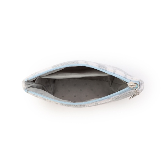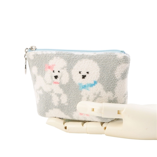 マルチーズやビション・フリーゼ、プードルを描いた『モフモフワンチャン』の舟型ポーチS。真っ白でフワフワのワンちゃんたちがじっとこちらを見つめている、何ともかわいらしい柄です。ピンクやブルーのリボンでおしゃれをしているのも微笑ましいポイント。小ぶりなサイズながらマチがあり、見た目以上の収納力があるのも魅力的です。