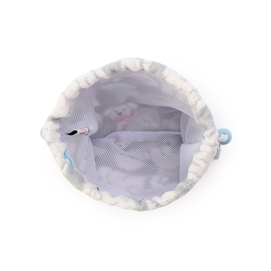 真っ白なマルチーズやビション・フリーゼ、プードルを描いた『モフモフワンチャン』の巾着です。ワンちゃんたちが身に着けているピンクやブルーのりぼんがアクセントになっています。内側はメッシュ素材にして通気性の良いハンドウォッシュ仕様に。普段使いからトラベルシーンにまで活躍する一品です。
