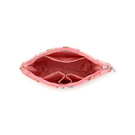 『クリスマスクッキーズ』の舟型ポーチMです。サンタさんやトナカイ、プレゼントなど、クリスマスをイメージさせるアイシングクッキー柄のかわいらしいアイテム。楽しい気持ちを盛り上げる、カラフルな色彩も魅力のポイント。サイドのマチや内側のオープンポケットにより、使いやすさと収納力を兼ね備えています。コスメやモバイルグッズ、文房具などを入れるのに重宝する一品です。