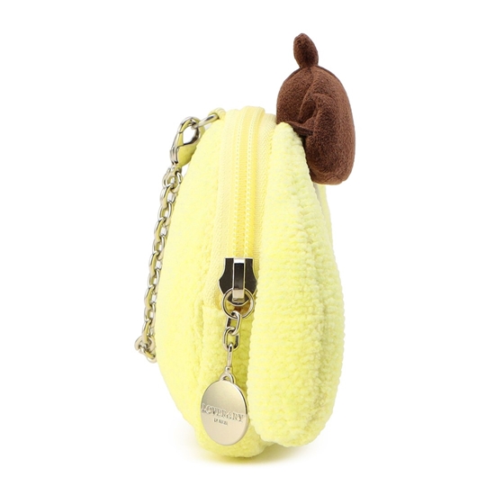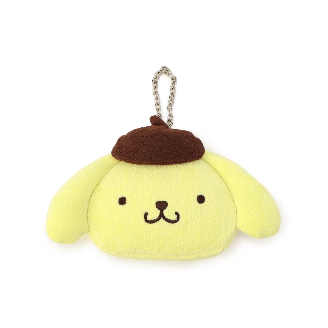 ふっくらとしたフォルムが愛らしい「ポムポムプリン」の顔型ポーチです。ICカードが入る大きさで、通勤や通学にも活躍します。リップやイヤホン、小銭など、ちょっとした小物を持ち運ぶのに便利です。チェーン付きのため、バッグのハンドルに付けることも可能。まわりの視線を集めるかわいらしい一品です。