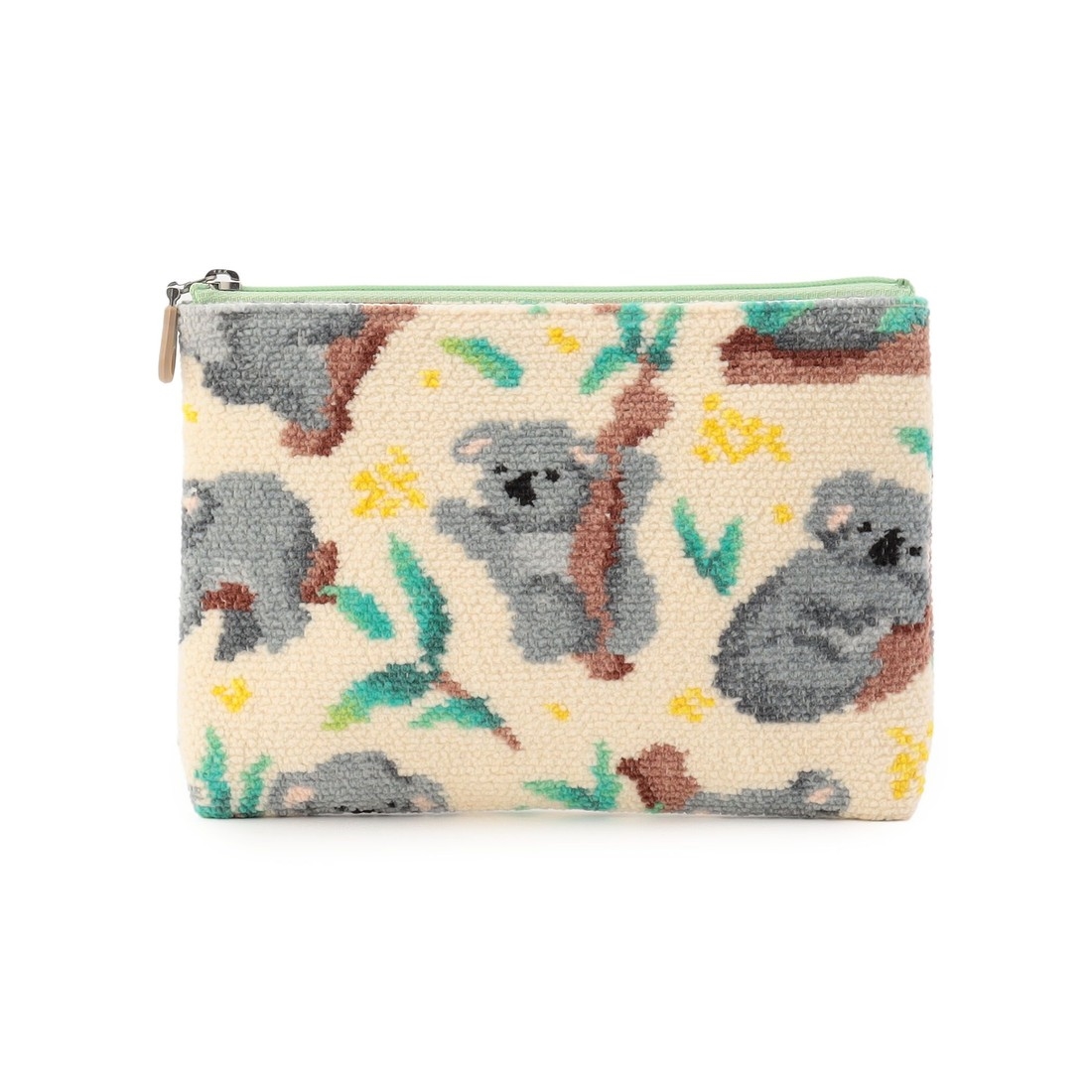 のんびりと過ごす、コアラたちが愛らしい『ホノボノコアラ』のフラットポーチSです。スリムなフォルムと、持ち運びしやすいコンパクトなサイズ感に仕上げました。内側にはオープンポケットを配し、小物をすっきりと整理可能に。カードや小銭、リップ、イヤホンなどの収納におすすめの一品です。