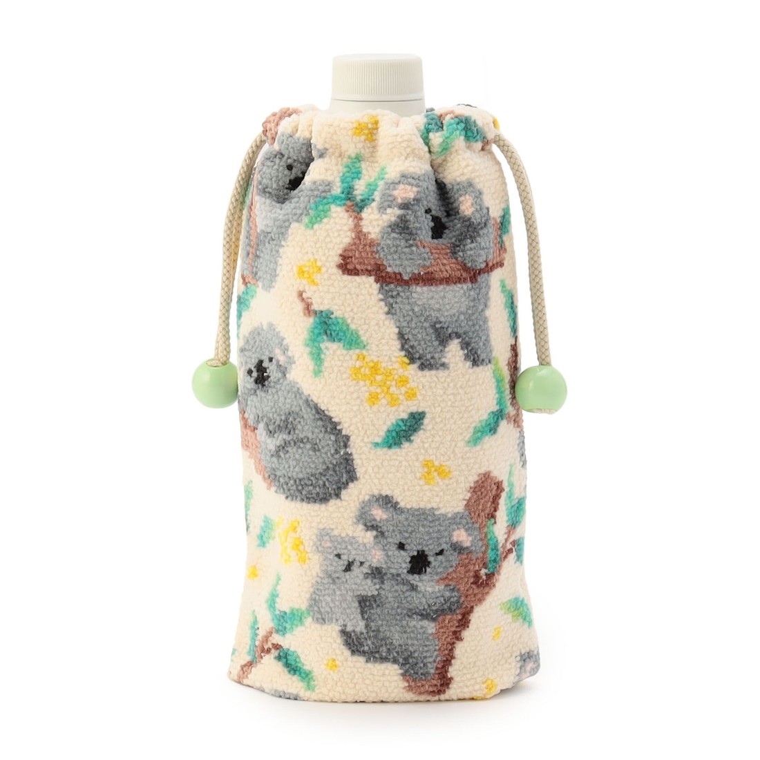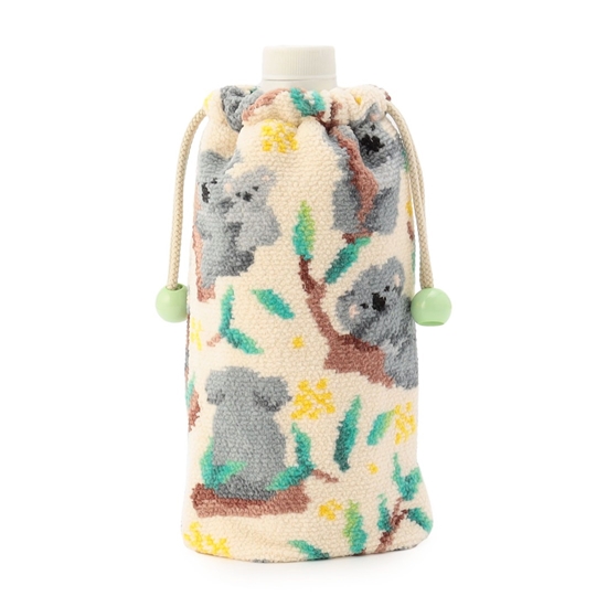 『ホノボノコアラ』のボトルポーチです。親子コアラや愛くるしいポーズをとるコアラなど、表情豊かなかわいらしさに視線が集まります。内側は手洗い可能なメッシュ生地を採用し、通気性を高めました。日々の水分補給やランチタイムなど、持っていると便利な一品です。