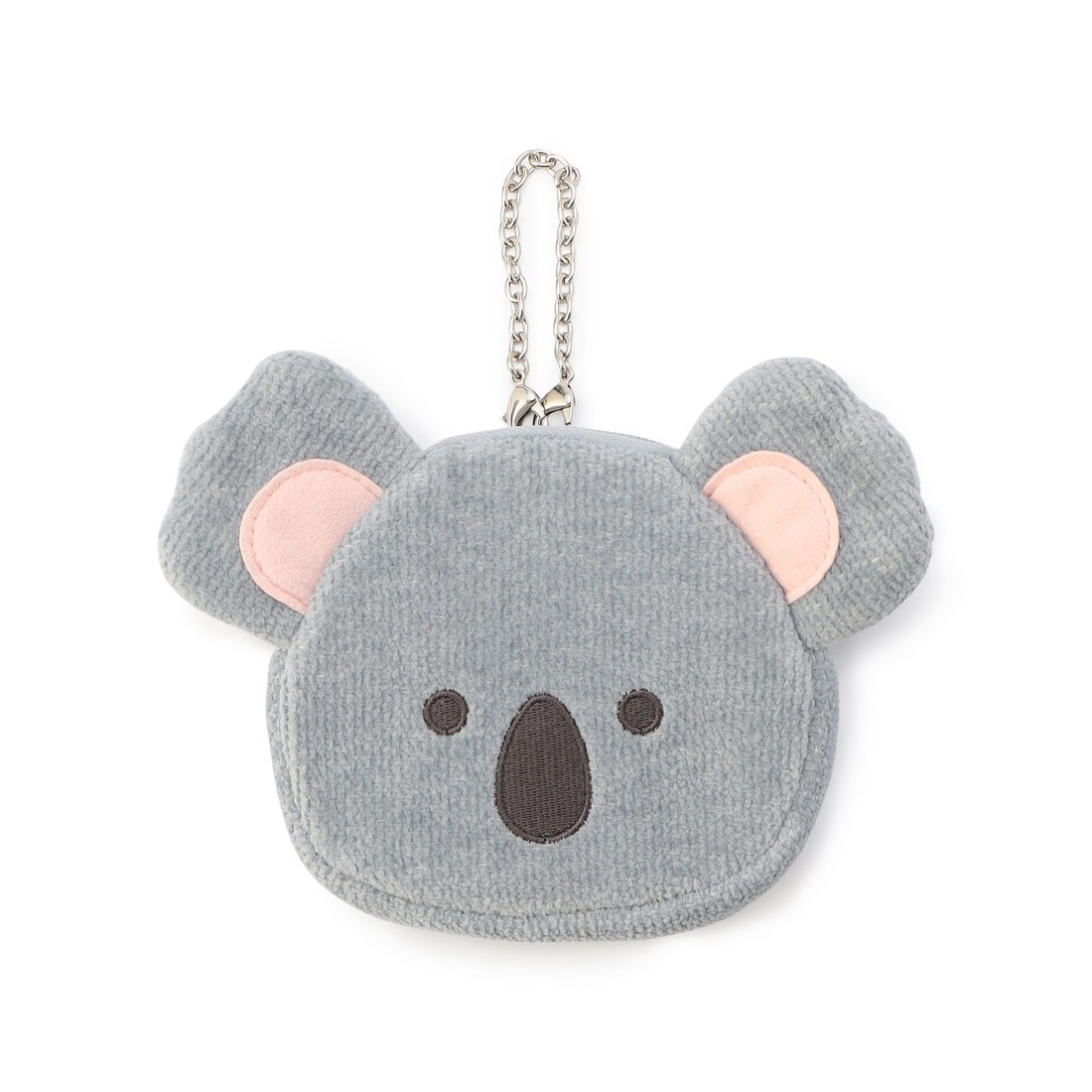大きな耳が愛くるしい『ホノボノコアラ』のコアラ型ポーチ。コンパクトな手のひらサイズです。小銭入れや鍵、カード類などを持ち運ぶ際にも便利です。大きく開くラウンドファスナーなので、中身をさっと取り出せるのも嬉しいポイント。バッグハンドルやベルトループに取り付けられるチェーン付です。