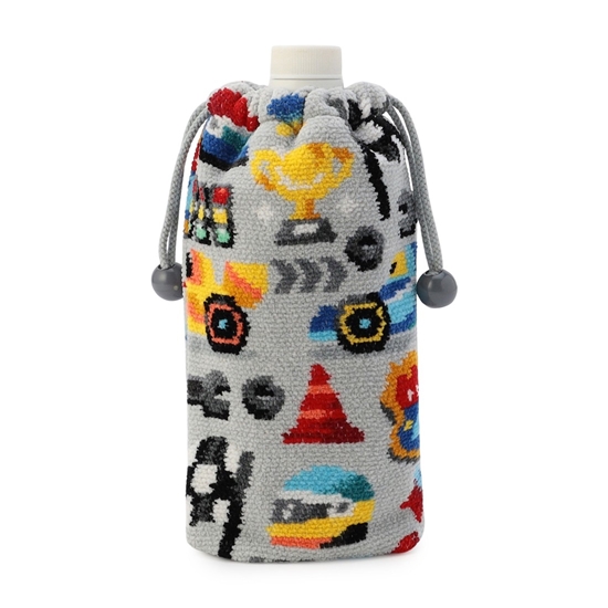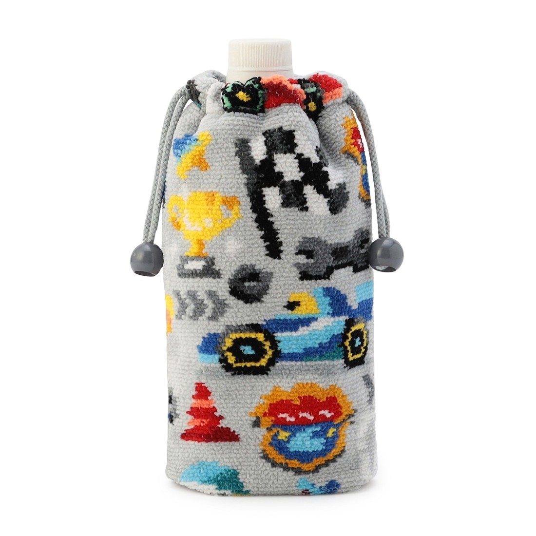 遊び心がはずむ『ラブラリーサーキット』のボトルポーチです。レーシングカーやトロフィー、チェッカーフラッグ、ヘルメットなどを描いた、サーキットをイメージさせるモチーフが魅力的。内側にメッシュ生地を採用し手洗いが出来るように仕上げました。ランチタイムやピクニック、遠足などお出かけをする際におすすめの一品。
