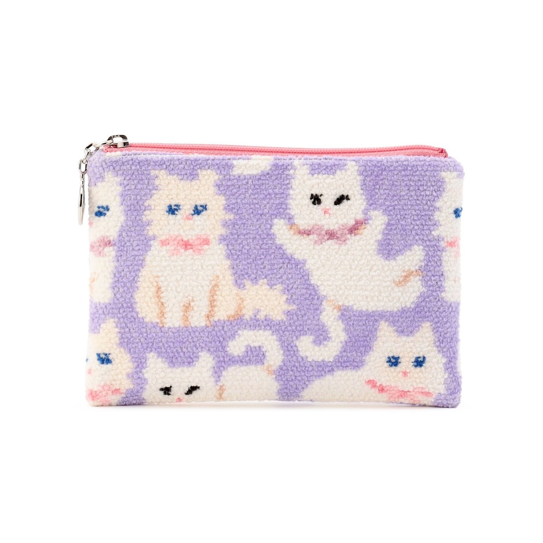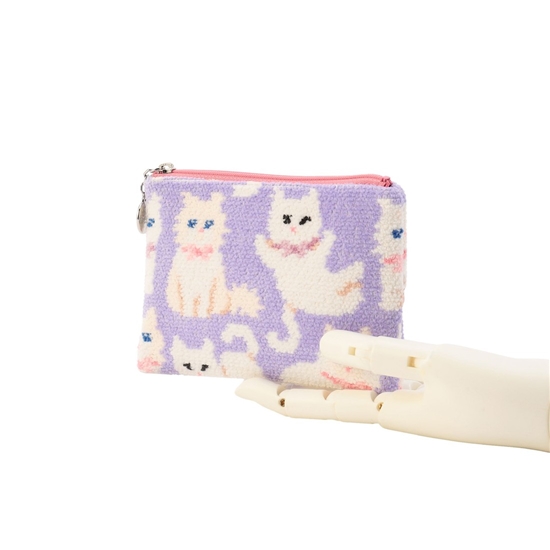 様々なポーズでこちらを見つめているネコたちがかわいらしい『モフモフネコチャン』のティッシュポーチ。ポケット部分にリップや目薬、常備薬などの小物類もまとめて収納でき、おしゃれかつスマートにティッシュを持ち歩けます。バッグ内でかさばりにくいスリムなフォルムも魅力のひとつ。ギフトにもおすすめの一品です。