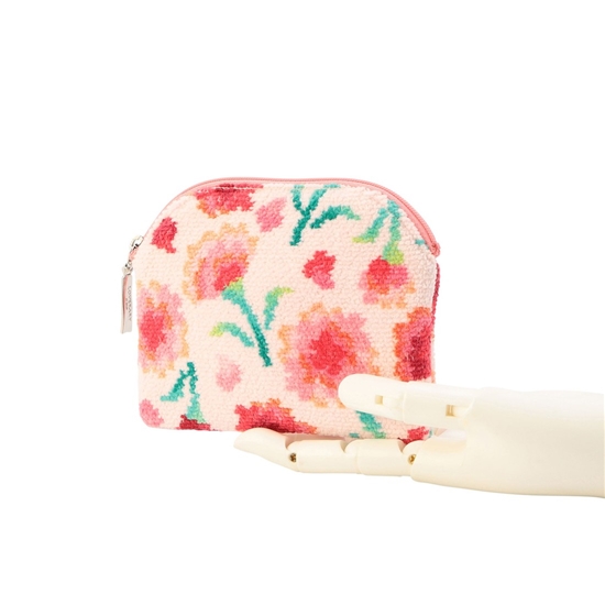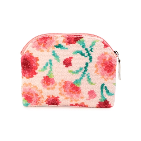 メイクポーチやトラベルポーチとして幅広く活用する『ラブラリーカーネーション』のラウンドフラットポーチです。底マチを省いたフラットタイプはすっきりとしていて、バッグの中で場所を取りません。間口がラウンド型に開くため、中身が見やすいのも特徴。内側には、見失いやすい小物を仕分けられるオープンポケットを2つ設けています。ギフトとしてもおすすめの一品です。
