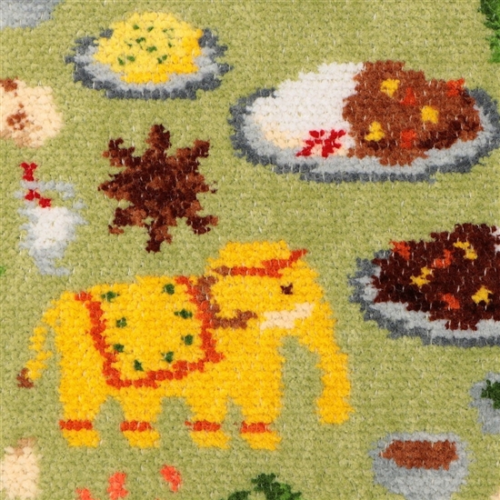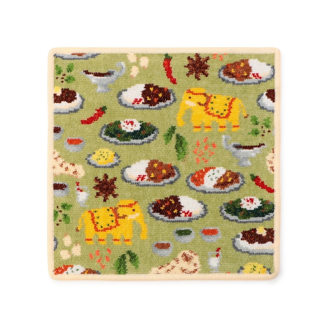 今にもカレーの香りが漂ってきそうな『ヒガワリカレー』のハンカチ。いろいろな種類のスパイスカレーをたくさんに散りばめた、遊び心あふれる柄です。男女問わずカレー好きな方へのギフトとしてお選びいただくのもおすすめです。