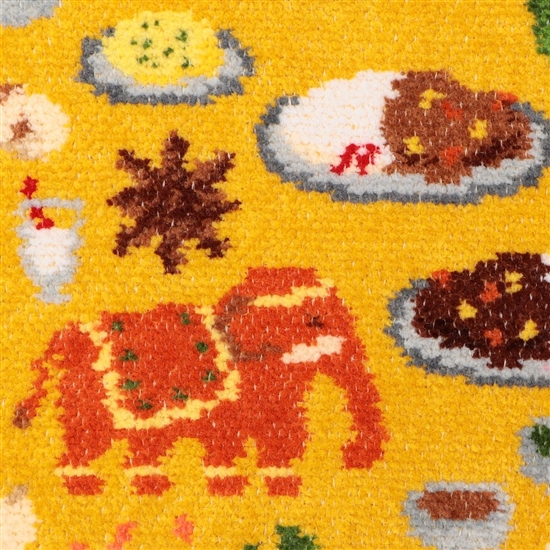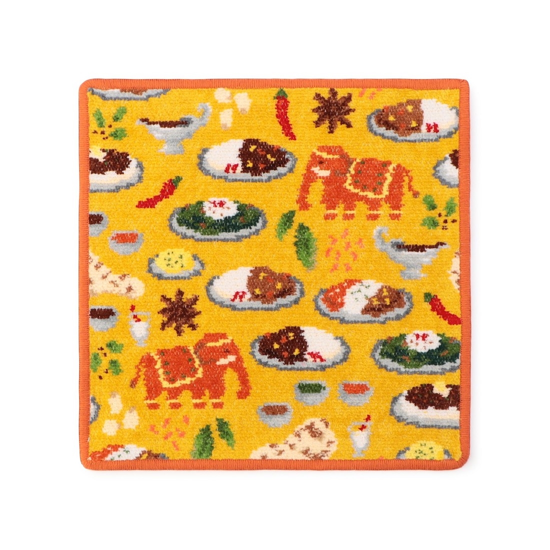 今にもカレーの香りが漂ってきそうな『ヒガワリカレー』のハンカチ。いろいろな種類のスパイスカレーをたくさんに散りばめた、遊び心あふれる柄です。男女問わずカレー好きな方へのギフトとしてお選びいただくのもおすすめです。