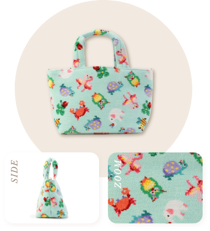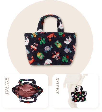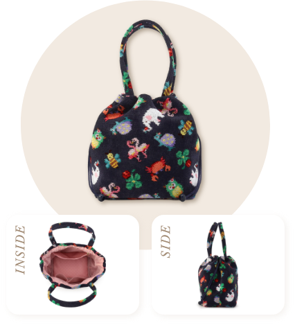 “幸せ集め”をテーマに、縁起の良い動物モチーフを散りばめた宝尽くしのデザインです。