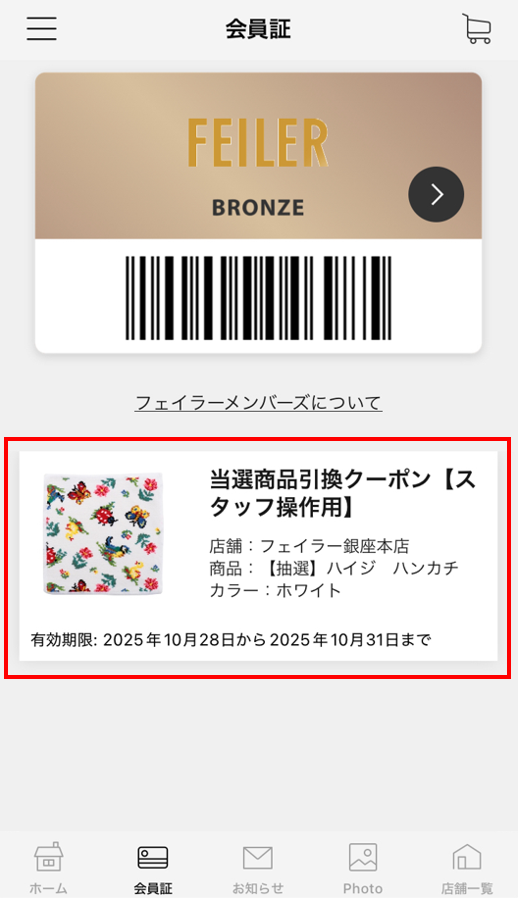 フェイラー公式オンラインショップでのお買い物が値引きになるサービス特典です。店頭で行なわれているキャンペーンと異なる場合がございますので予めご了承ください。