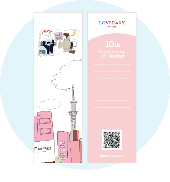 毎月のブックマークを揃えると、イラストがつながった1枚の絵になります。